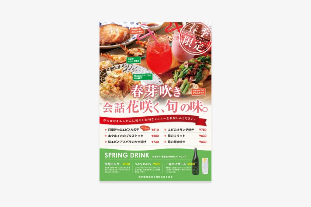 飲食店「四季折々」POP|合同会社Smiroost / 高山市
