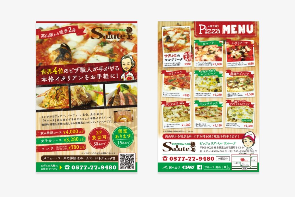 飲食店 フライヤー|ピッツェリアバル サルーテ / 高山市